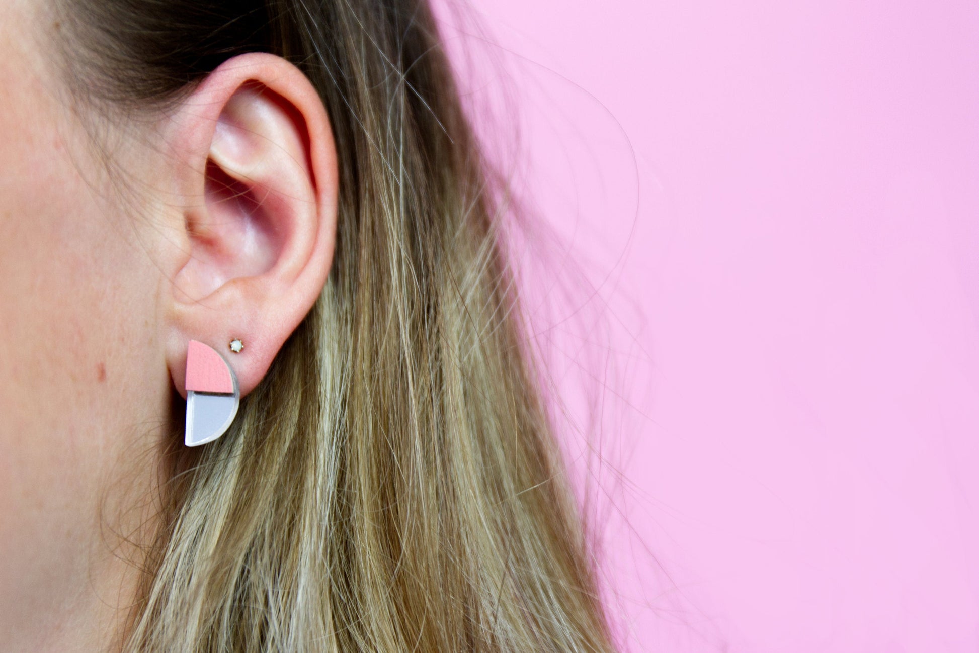 Deze halfronde oorstekers zijn geïnspireerd op minimalistische geometrische vormen.